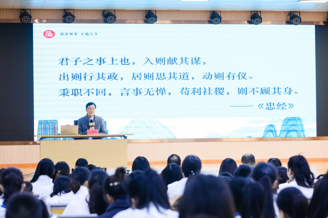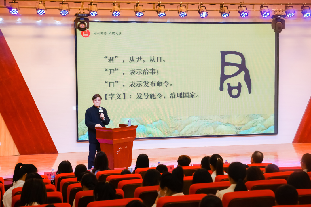 講座中,孔老師(shī)就“何謂君子、君子孝道、君子立德、君子治學、君子知教、君子之樂(yuè)”六個(gè)方面層層遞進,從“君子有(yǒu)九思:視思明(míng),聽思聰,色思溫,貌思恭,言思忠,事思敬,疑思問,忿思難,見得思義。”,到(dào)“君子有(yǒu)三樂(yuè),而王天下不與存焉。父母俱存,兄弟無故,一樂(yuè)也(yě);仰不愧于天,俯不怍于人(rén),二樂(yuè)也(yě);得天下英才而教育之,三樂(yuè)也(yě)。”,通古博今,深入淺出。孔老師(shī)幽默風趣地(dì)闡述著(zhe)君子的(de)重要精神,赢得了在場(chǎng)觀衆的(de)陣陣掌聲。
