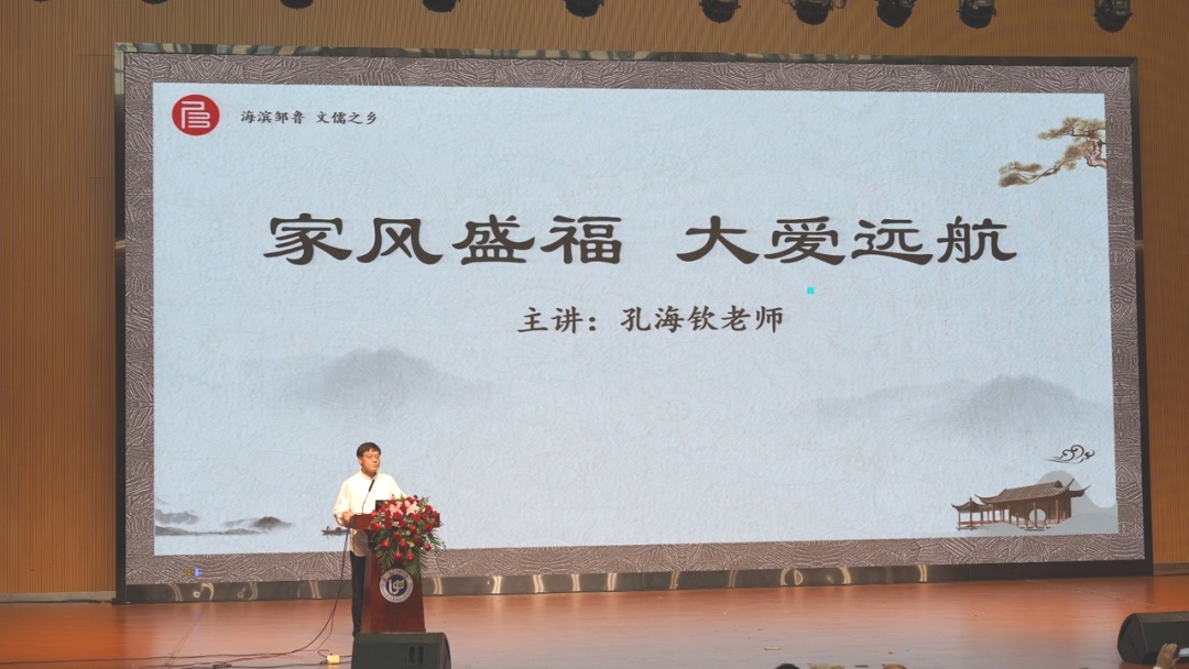 主講人(rén)文(wén)儒學院院長孔海(hǎi)欽老師(shī)進行(xíng)了“家風盛福 大(dà)愛遠航”的(de)主題講座。