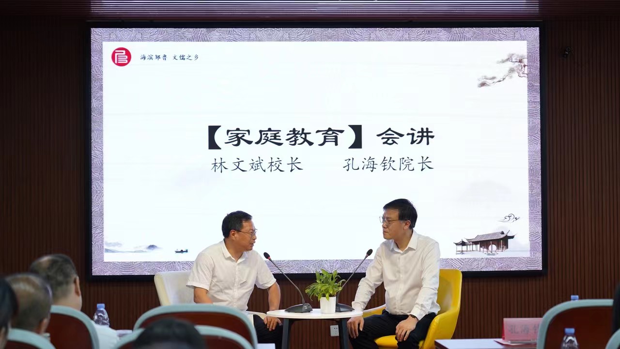 随後,文(wén)儒學院院長孔海(hǎi)欽老師(shī)進行(xíng)了“品德樹立與家庭教育”的(de)主題講座。