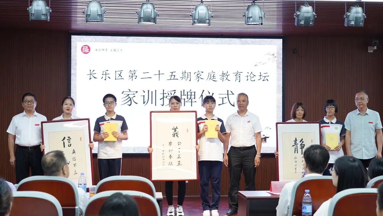 論壇上(shàng),德誠慈善基金(jīn)會(huì)爲優秀家庭代表,準備了家訓牌匾,并于現場(chǎng)舉行(xíng)了“家風家訓家庭代表授牌儀式”,區教育局機關黨總支李永剛書(shū)記、文(wén)儒書(shū)院院長孔海(hǎi)欽、德誠慈善基金(jīn)會(huì)代表等嘉賓親自爲優秀家庭代表頒發家訓牌匾