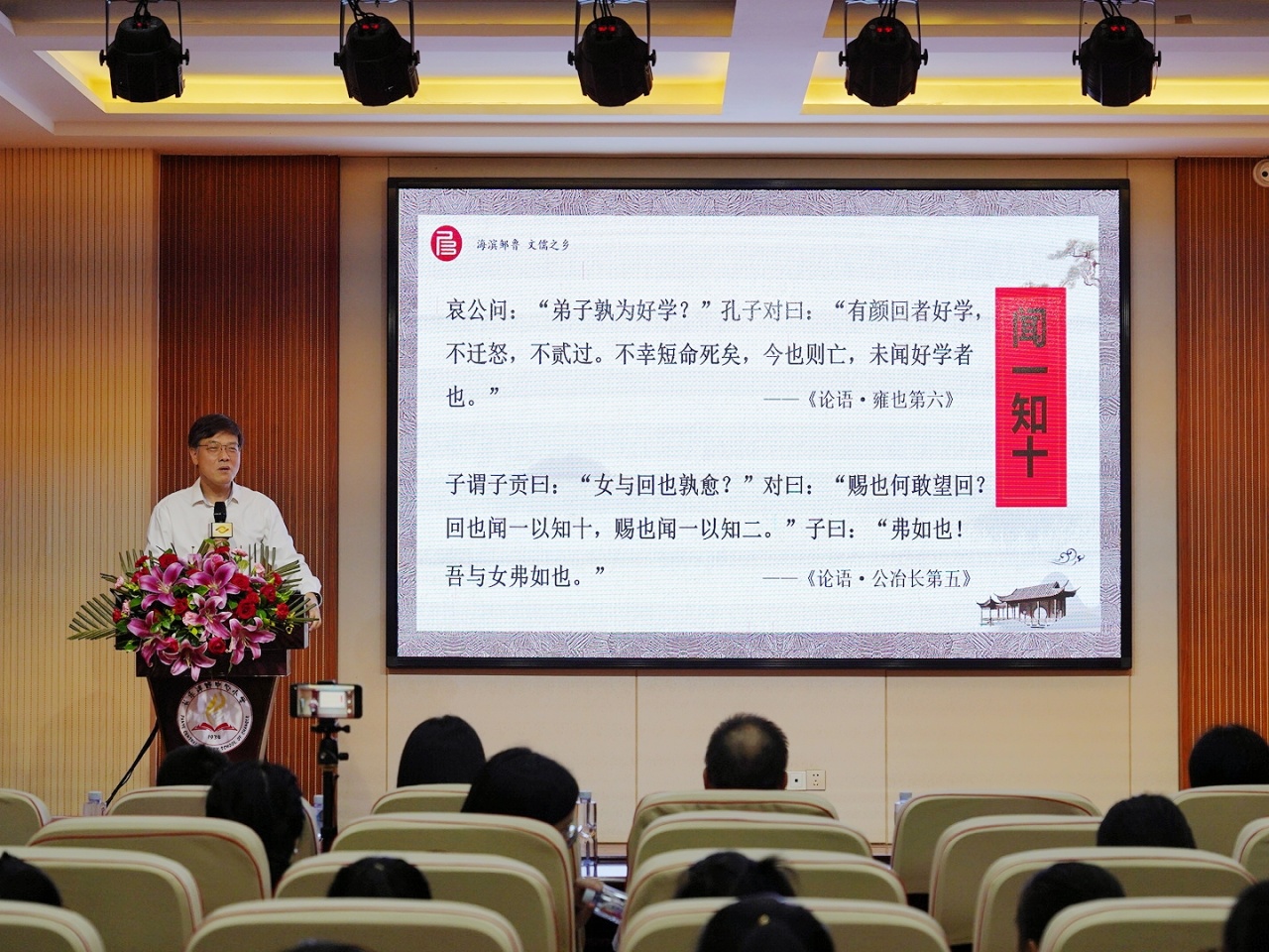 孔子七十五代世孫、文(wén)儒學院院長孔海(hǎi)欽老師(shī)進行(xíng)了“學校(xiào)生活禮”主題講座。