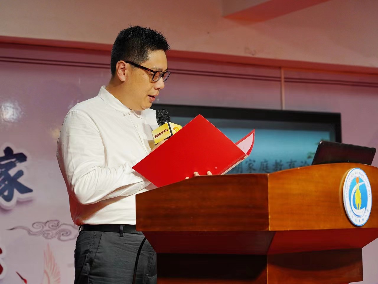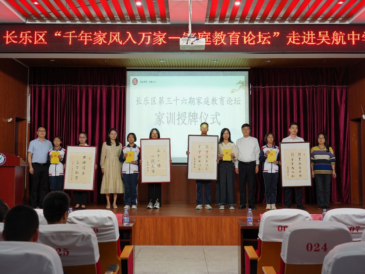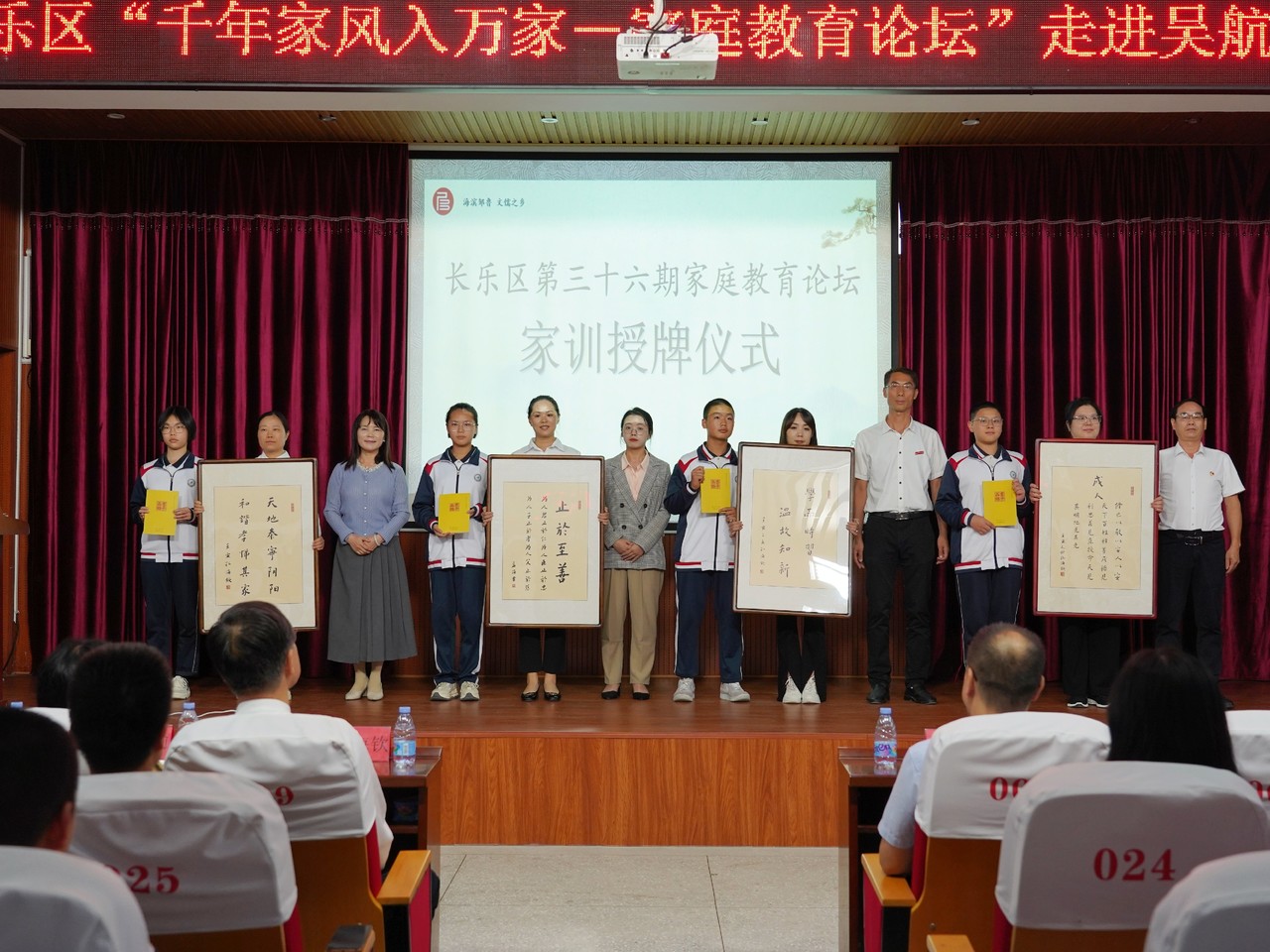論壇上(shàng),德誠慈善基金(jīn)會(huì)爲吳航中學、鳌峰小(xiǎo)學的(de)優秀家庭代表準備了家訓牌匾和(hé)家庭共讀(dú)書(shū)籍《君子品格》,并于現場(chǎng)舉行(xíng)了“家風家訓家庭代表授牌儀式”,嘉賓代表爲優秀家庭代表頒發家訓牌匾。